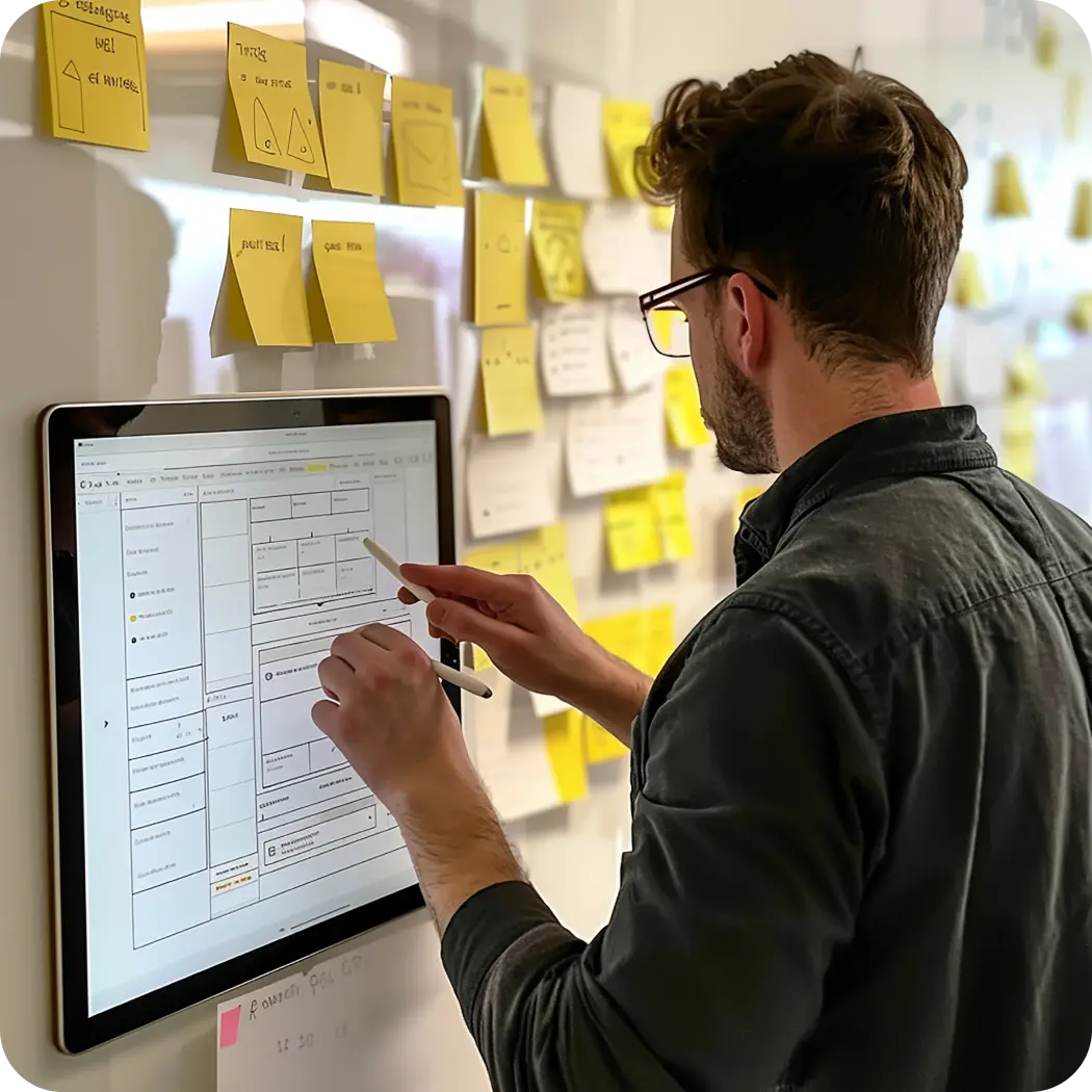 İhtiyaçlarınızı ve hedeflerinizi analiz ediyor, wireframe ve UI/UX tasarımlarını oluşturuyor, iş akışını netleştirirken yazılım mimarisini kurguluyoruz.